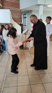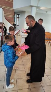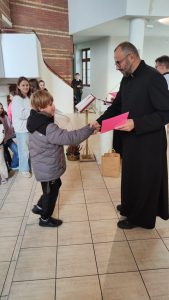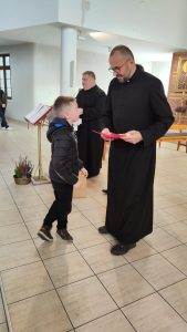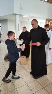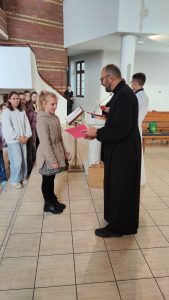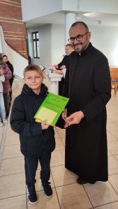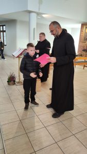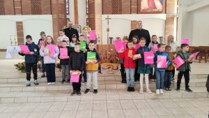 W konkursie wzięło udział 19 dzieci. Na podium stanęli: Zuzanna z SP 5, Stanisław i Dawid z SP 9. Nie brakowało prac z innych szkół jak: KSP, SP 4, SPI, Przedszkole nr 20. Wszyscy uczestnicy zostali nagrodzeniu słodkimi upominkami i dyplomami.  A trójka która zebrała najwięcej polubień na naszym parafialnym FB, dodatkowo bony do wykorzystania w Inowrocławiu na kwotę 100 zł. za I miejsce i po 50 zł. za II i III miejsce.