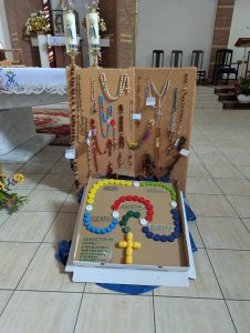 Miesiąc październik poświęcony jest modlitwie różańcowej. Duszpasterze naszej parafii zorganizowali konkurs dla dzieci, na wykonanie różańca z ekologicznych przedmiotów. Królowały kasztany, żołędzie, ciecierzyca, kawa, papier i wiele innych.