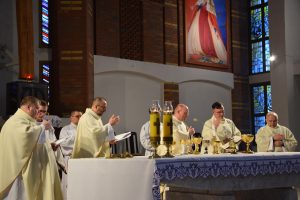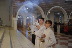 Msza Wieczerzy Pańskiej to uroczysta liturgia sprawowana w Wielki Czwartek wieczorem, która oficjalnie rozpoczyna obchody Triduum Paschalnego. Upamiętnia ona Ostatnią Wieczerzę oraz ustanowienie przez Jezusa dwóch sakramentów: Eucharystii i kapłaństwa. Liturgii tej w naszej parafii przewodniczy wikariusz ks. Piotr Froelich w koncelebrze z kapłanami posługującymi w naszej parafii. Przed samą liturgią, grupy duszpasterskie naszej parafii złożyły życzenia kapłanom, w dniu ich święta.