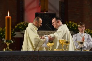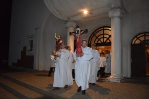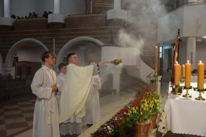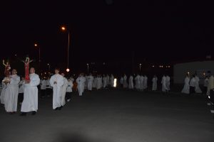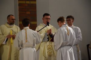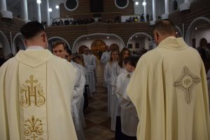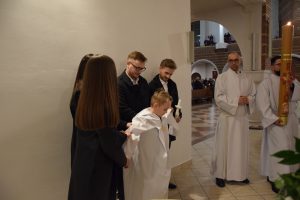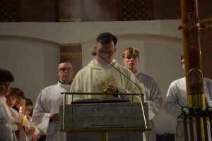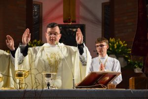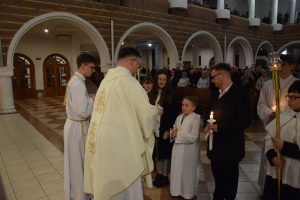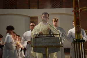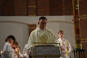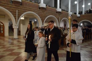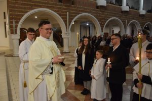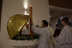 Wigilia Paschalna to nie tylko „sobota wieczorem”. To najważniejsza liturgia w całym roku Kościoła, matka wszystkich wigilii. Choć sprawowana po zapadnięciu zmroku, cała przesiąknięta jest światłem. To właśnie w tę noc celebrujemy przejście ze śmierci do życia – największy cud w historii chrześcijaństwa. Uroczystej Liturgii o godz. 21.00, przewodniczył ks. Kamil a koncelebrowali ją pozostali kapłani posługujący w parafii.